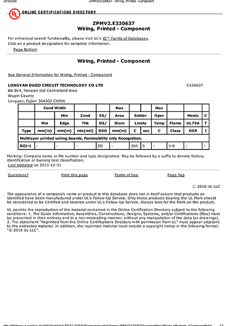 自1997年成立以來,都之杰已經獲得ROHS產品認證,各項技術指標達到國家先進水平,質量和信譽是企業的生命,我們一直以來持續(xù)不斷改善產品的質量,以質量取勝市場,提高公司的信譽度。多年來憑優(yōu)良的產品質量、準時快捷的供貨和周到細致的服務,深得國內外客戶的好評。我們已經獲得良好的聲譽和客戶的信任,并逐漸成為客戶可信賴的、能長期合作的印刷線路板戰(zhàn)略合作供應商。我們堅持向國內外先進企業學習并不斷提升自主創(chuàng)新。公司擁有經驗豐富及穩(wěn)定的團隊,視質量為企業生命,嚴格推行ISO9001質量管理體系,符合ROHS標準,并獲得了UL安全認證、TS16949和CQC認證。